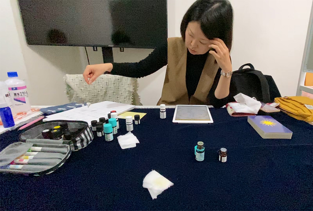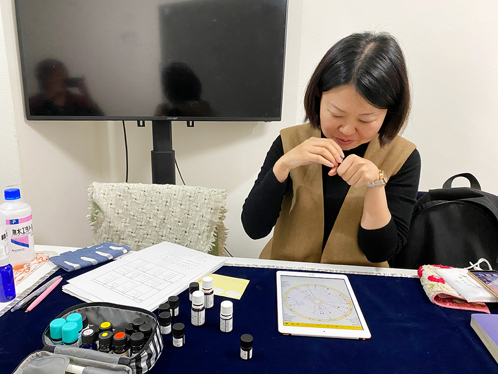 わたしたちの方は、まったくお客様がいない時間帯があったので、甘夏さんにアロマ占星術をやってもらいました。