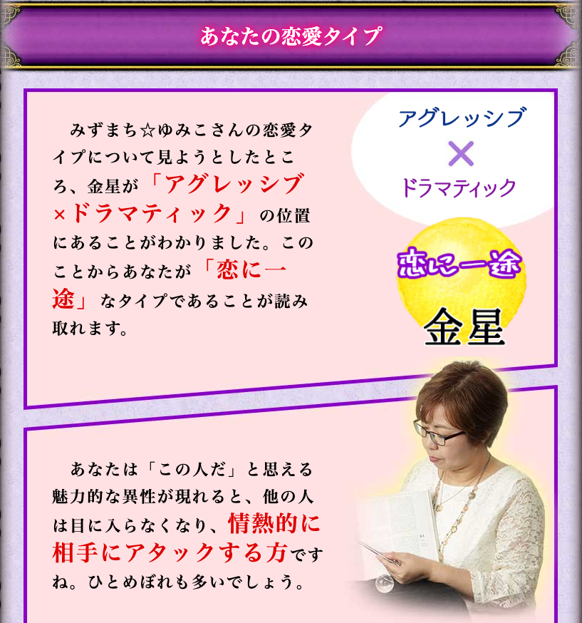 有料部分では、もっと具体的に運命のお相手の詳細や時期、体の相性やどんな幸せが待ち受けているのかなど、詳しい鑑定結果が得られます。