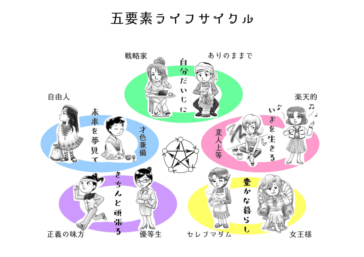 はい。この五要素ライフサイクル図は、とても便利です。生まれつきの図(つまり持って生まれた資質)だけでなく、後天的に回ってくる時期運の要素も読めます。
