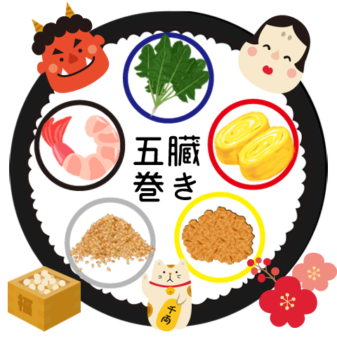 恵方巻は七福神にちなんで七つの具材を巻いて「福を巻き込む」「幸運を巻き込む、取り込む」なんて意味があるのだとか。