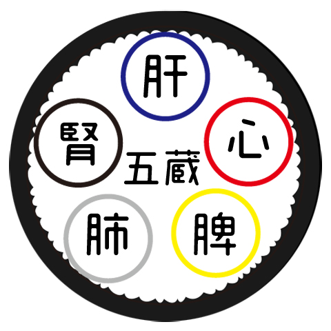 おなじみの五行の図「木・火・土・金・水」です。五行に属する色=五色「青・赤・黄・白・黒」もあることからそれに対応する五臓「肝・心・脾・肺・腎」を養う食材に属する色のものを食するという説もあります。