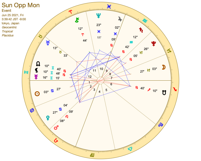 太陽が蟹座に入った瞬間のホロスコープ、夏至図からは、秋分の日までのムードが表されています。