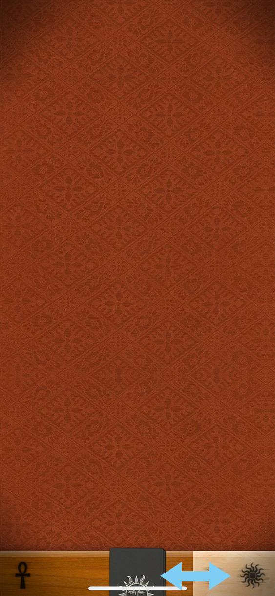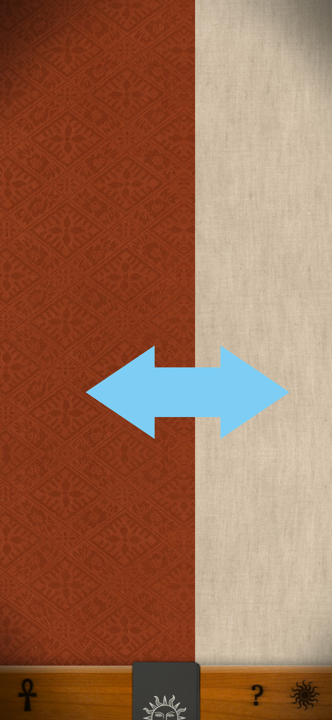 タロットクロスの部分(背景)や下の部分を左右にフリックすると、色を変えられます。