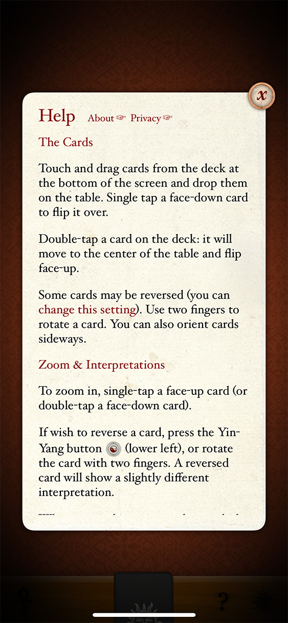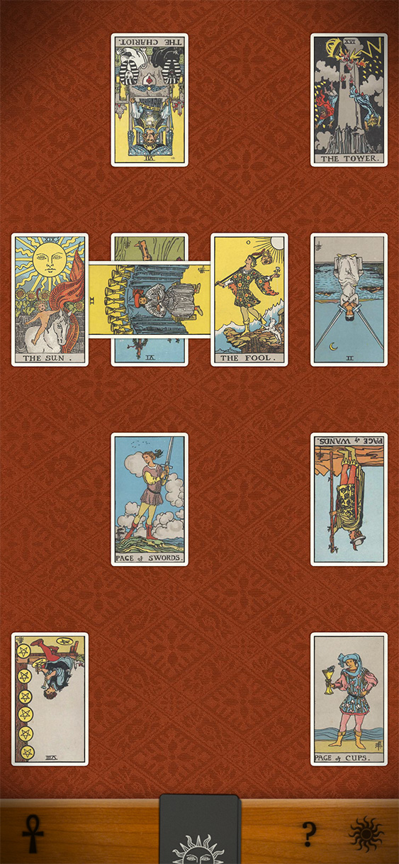 タロットを読める人、練習している人にとっては、カードが自由に並べられて、ライダー版、マルセイユ版両方使える便利なアプリです。