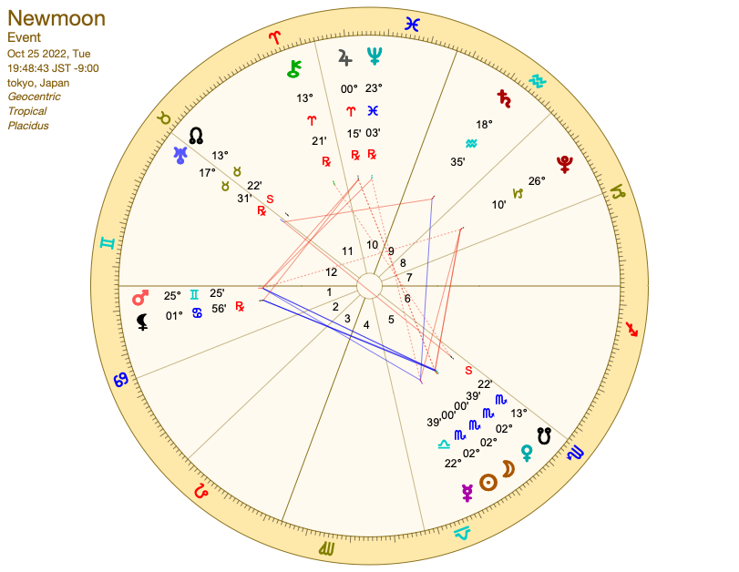 火曜日19:49は5ハウスで蠍座の新月です。