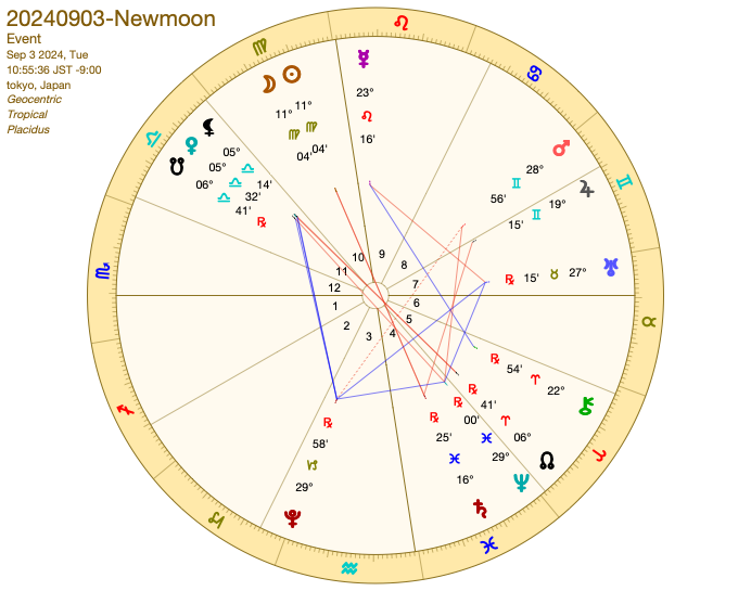 火曜日10:55に10ハウスで乙女座の新月です。
