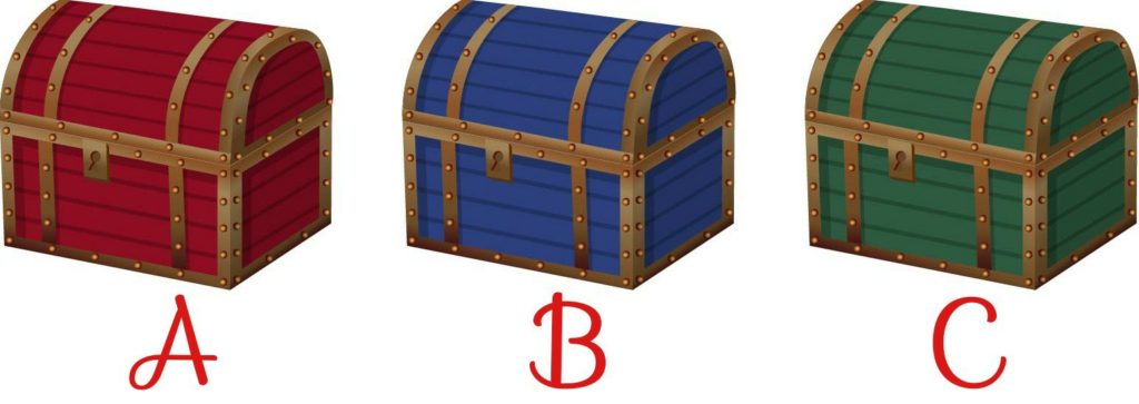 3つ宝箱がありますがこのうちの1つだけこの鍵で開きます。あなたはどの宝箱だと思いますか?