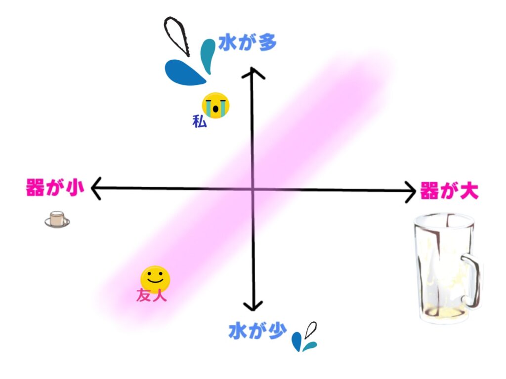 それをいうとわりといつも動き回っている私の器はもう少し大きくマグカップくらいはあるでしょうか。結構欲張りだし。