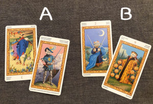 A:カップ3逆&ソードペイジ、 B:ソード2&ペンタ9