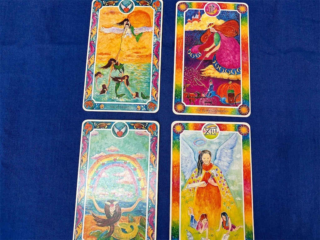 4枚目の艮は「物事の終わりにして始まり」。再びカリブ海で1枚目からカップの数が4つ増えたハートの10。海がマジックなら、陸はリアル。人魚はどちらも自由に行き来できます。カリブ海なんて、一生に一度行けるかどうかと身構えていましたが、気に入れば何度も往復するようになるかもしれません。